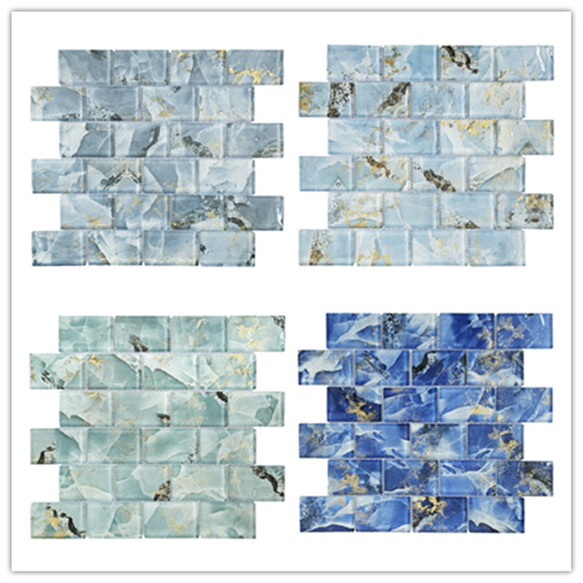 Blue crystal glass mosaic tiles are small tiles made from high-quality glass, typically used for lining the interiors of swimming pools. These tiles are available in various shades of blue and can include a mix of colors to create visually appealing designs.